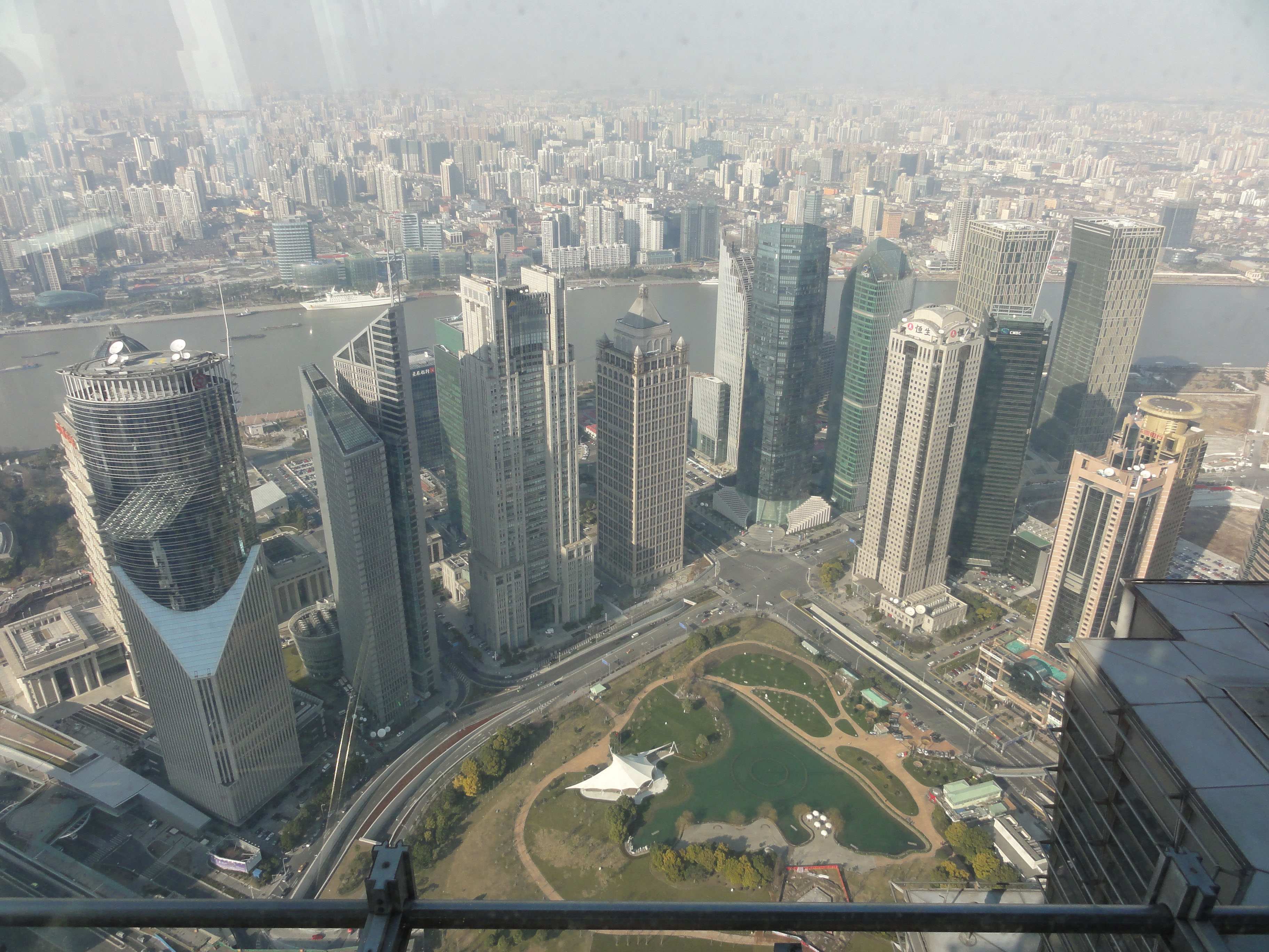 Blick aus dem Jin Mao Tower über die Skyline von Shanghai.